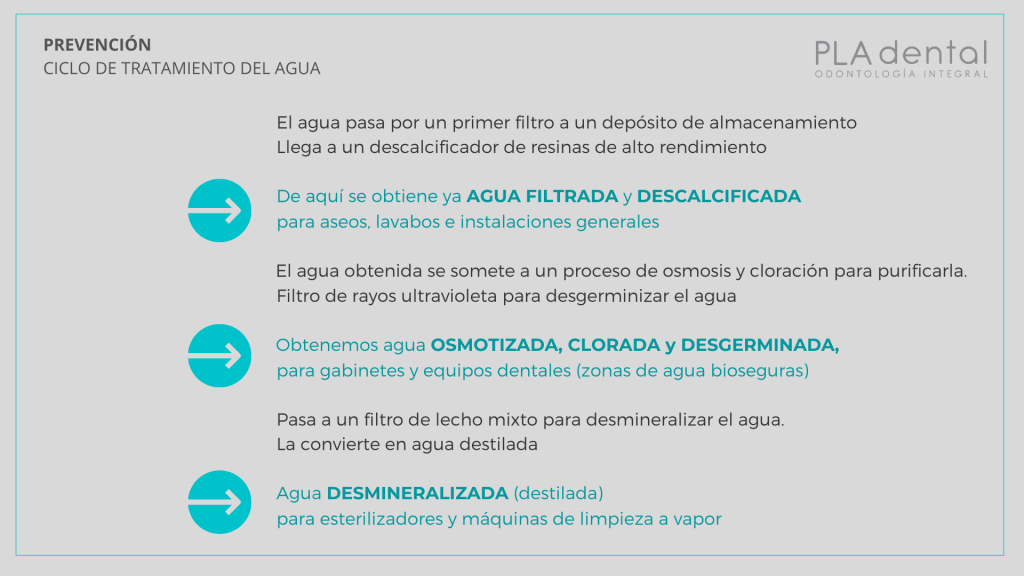 El agua que llega a través de la red de abastecimiento habitual suele venir con impurezas e incluso, en ocasiones, contaminada. Por ello, en Clínica dental Rafael Pla utilizamos un sistema de tratamiento interno, para garantizar que el agua que utilizamos en tratamientos dentales es de la máxima calidad.