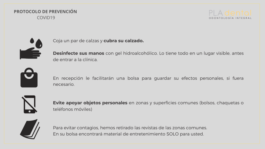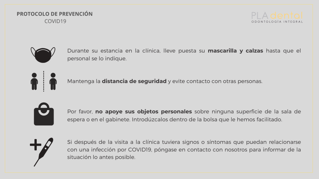 Poco a poco volvemos a la normalidad y a nuestra política de prevención habitual, se suma ahora evitar contagios por COVID19. Por ello, necesitamos TU colaboración. Hemos elaborado un protocolo para los pacientes que tengan prevista una visita a la clínica. Son medidas de seguridad muy sencillas. Lo hacemos por ti, por todos, para que juntos podamos volver a la normalidad lo antes posible.